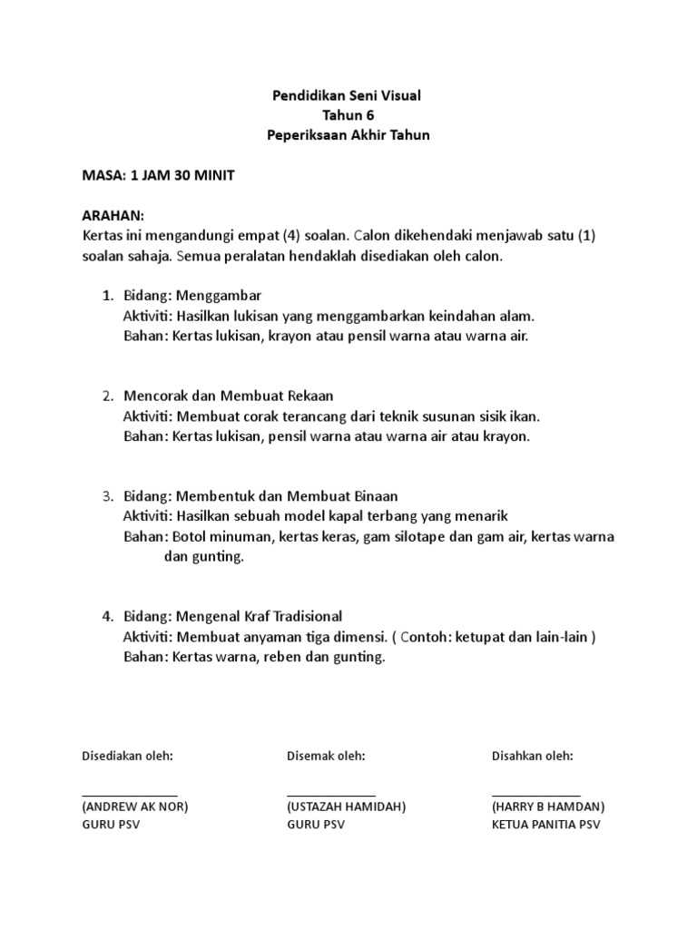Pendidikan Seni Visual Ujian Akhir Tahun 2018 Tahun 6 Pdf